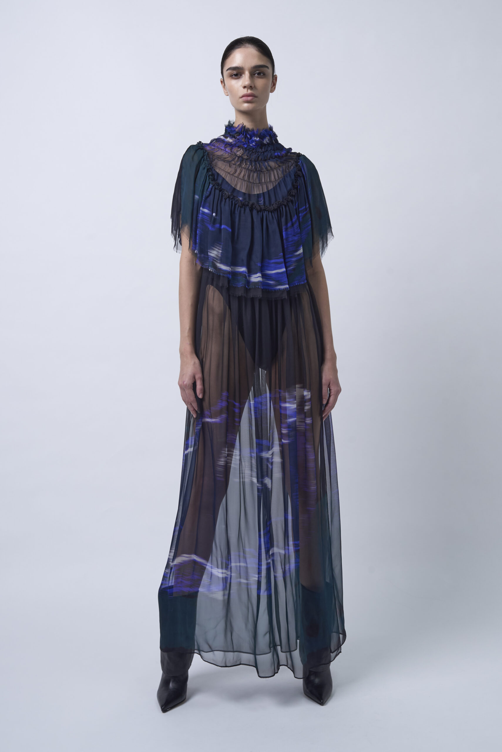 Długa sukienka w stylu boho ze wzorzystego jedwabiu.