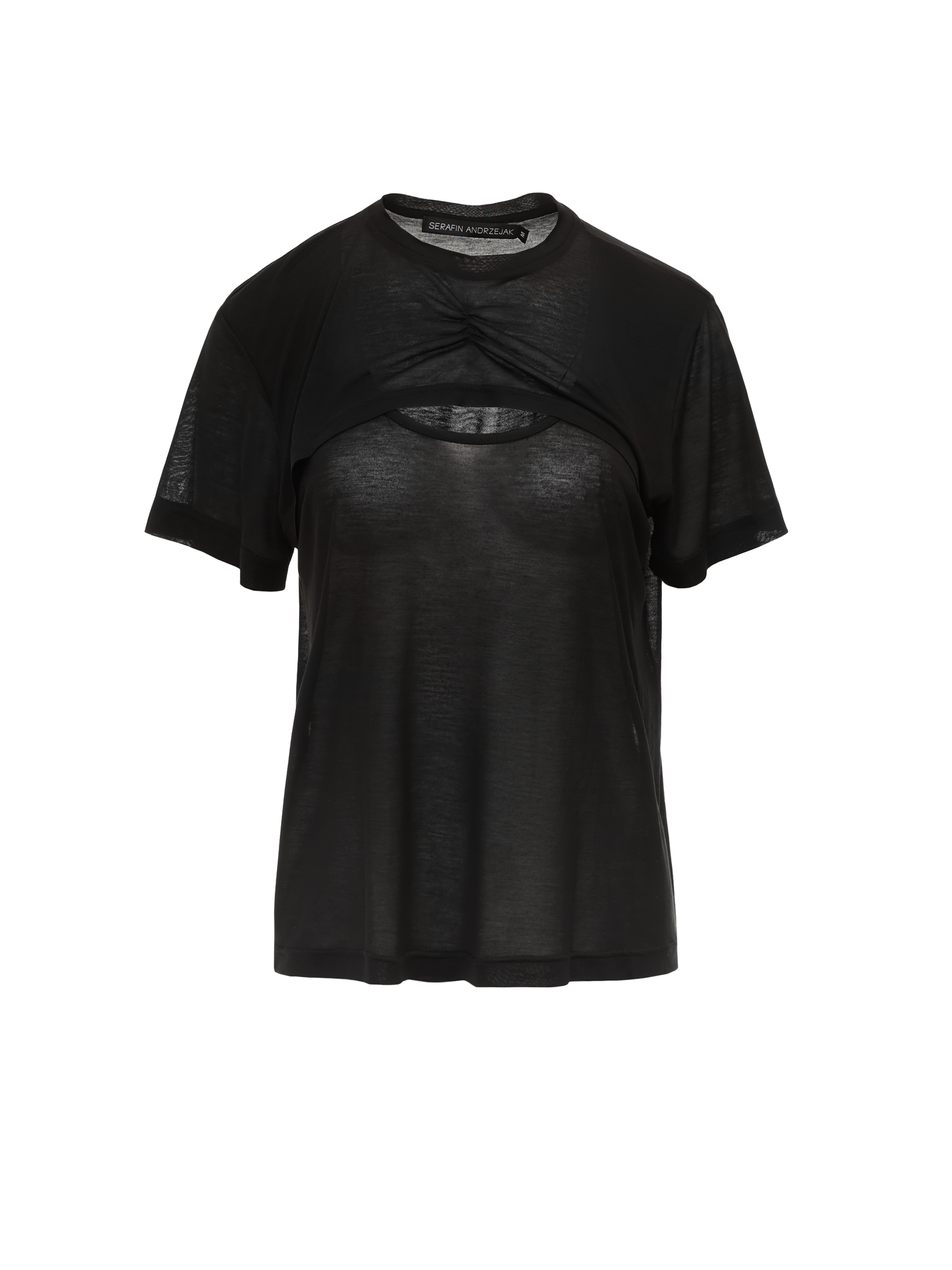 T-shirt z podwójnym przodem, lekko zmarszczony top na przodzie pod spodem top z głębokim dekoltem.